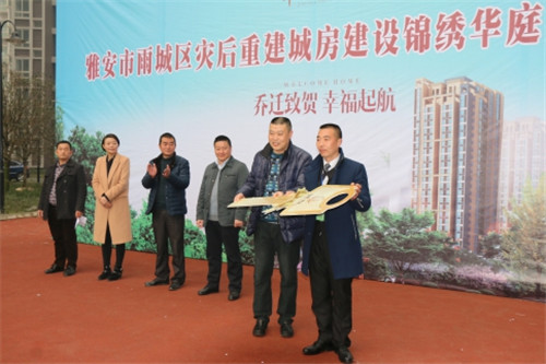 交房儀式上,出席交房儀式的相關(guān)部門負(fù)責(zé)人向付出辛勤努力的建設(shè)者表示崇高的敬意,向喜遷新居的全體居民表示熱烈的祝賀。并指出,安居房建設(shè)工作是一項(xiàng)政策性強(qiáng)、涉及面廣,復(fù)雜又繁重的工作,更是群眾關(guān)心、社會(huì)關(guān)注的熱點(diǎn),全力做好這項(xiàng)工作是大家義不容辭的責(zé)任和義務(wù)。在下一步工作中,爭取在2015年12月31日前,所有城房項(xiàng)目將達(dá)到“拆除外架、水電氣通、入戶道路通、完成樣板間、分房到戶、可以內(nèi)裝” 的要求。在既定時(shí)間內(nèi),全面完成重建任務(wù),為雅安經(jīng)濟(jì)作出貢獻(xiàn)。