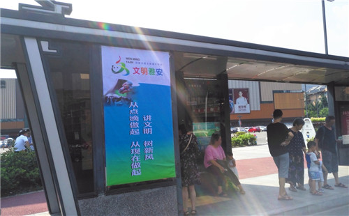 此次氛圍營(yíng)造活動(dòng),城投公司在管轄范圍內(nèi)的20處公交車站臺(tái)制作了以“社會(huì)主義核心價(jià)值觀”“講文明樹(shù)新風(fēng)”為主要內(nèi)容的宣傳展板,并利用公交車站臺(tái)LED顯示屏滾動(dòng)播放相關(guān)標(biāo)語(yǔ)。