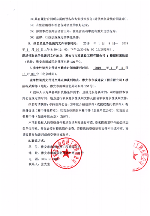 雅安市城市道路抑塵治理試點項目進行競爭性談判公告(市政公司)