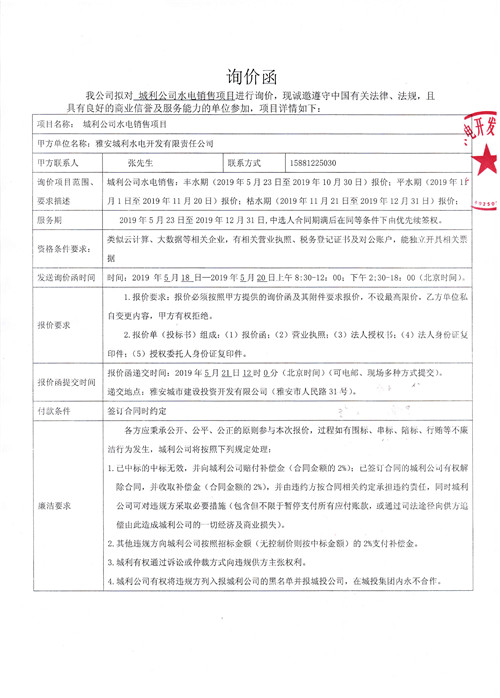 城利公司水電銷售項目詢價函
