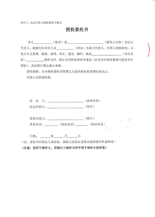 附件:報價函及授權委托書
