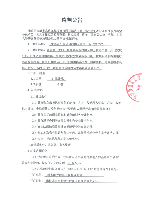 生態(tài)停車場(chǎng)項(xiàng)目打圍及清表工程競(jìng)爭(zhēng)性談判公告(第二次)