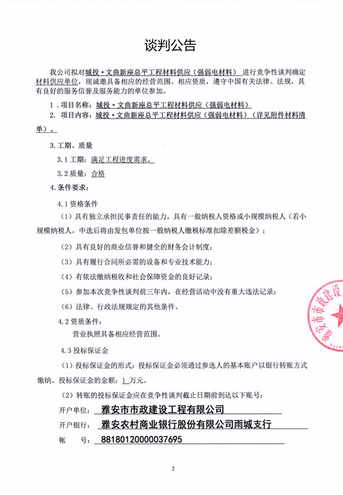 城投·文曲新座總平工程材料供應(強弱電材料)競爭性談判公告