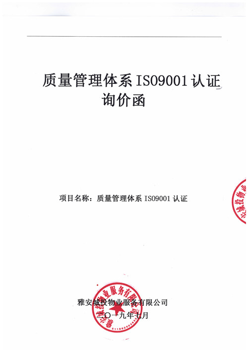 城投物業(yè)質(zhì)量管理體系IS09001認(rèn)證詢價函