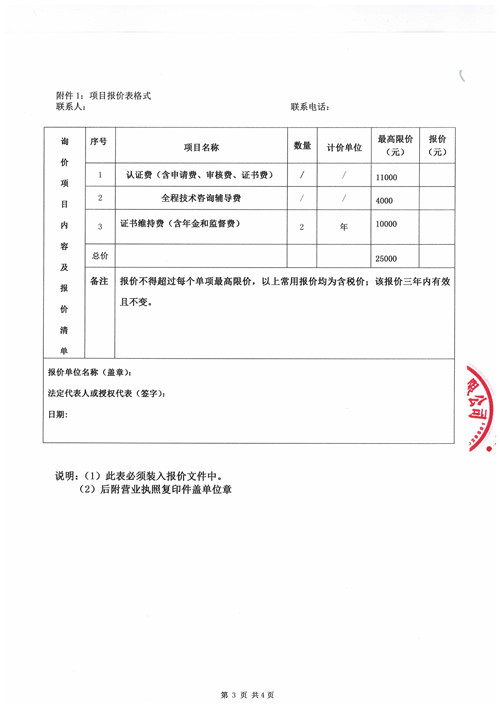 質(zhì)量管理體系ISO9001認(rèn)證詢價函
