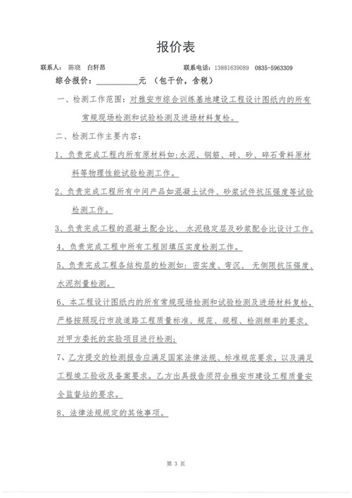 雅安市綜合訓(xùn)練基地建設(shè)工程——工程檢測(cè)詢價(jià)函(第二次)