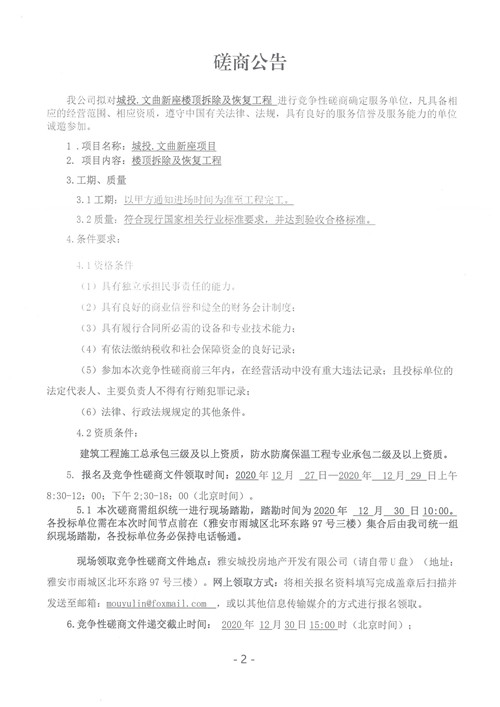 城投·文曲新座樓頂拆除及恢復(fù)工程競(jìng)爭(zhēng)性磋商公告