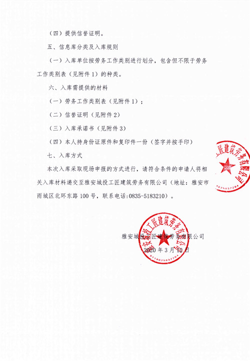 關于征集勞務施工人員入庫的公告