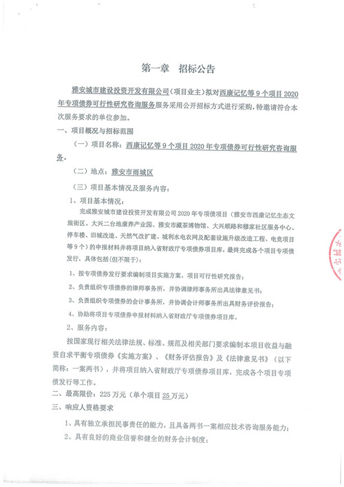 西康記憶等9個項目2020年專項債券可行性研究咨詢服務(wù)招標(biāo)公告