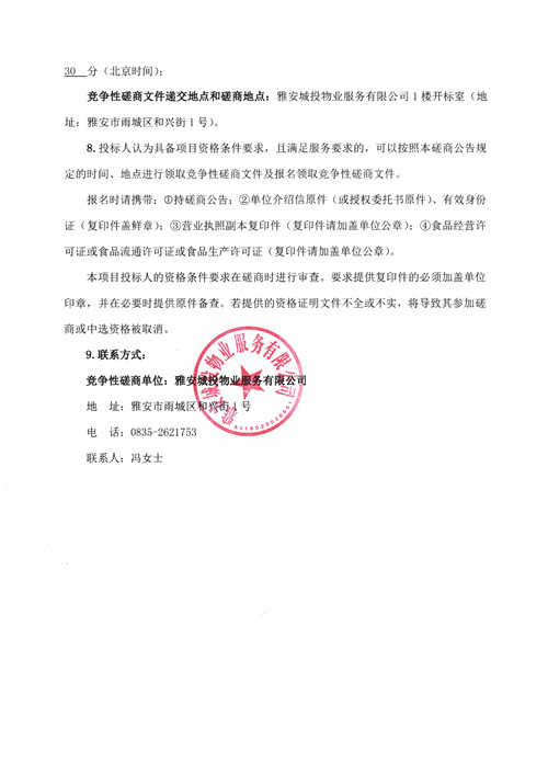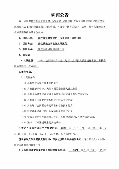 城投物業(yè)關于城投公司食堂食材(瓜果蔬菜)采購項目競爭性磋商公告