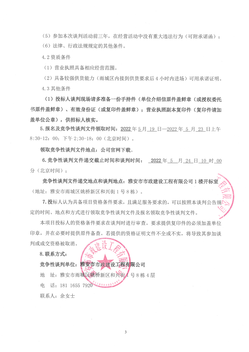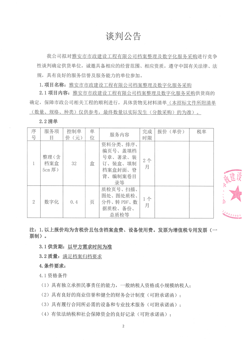雅安市市政建設(shè)工程有限公司檔案整理及數(shù)字化服務(wù)采購競爭性談判公告