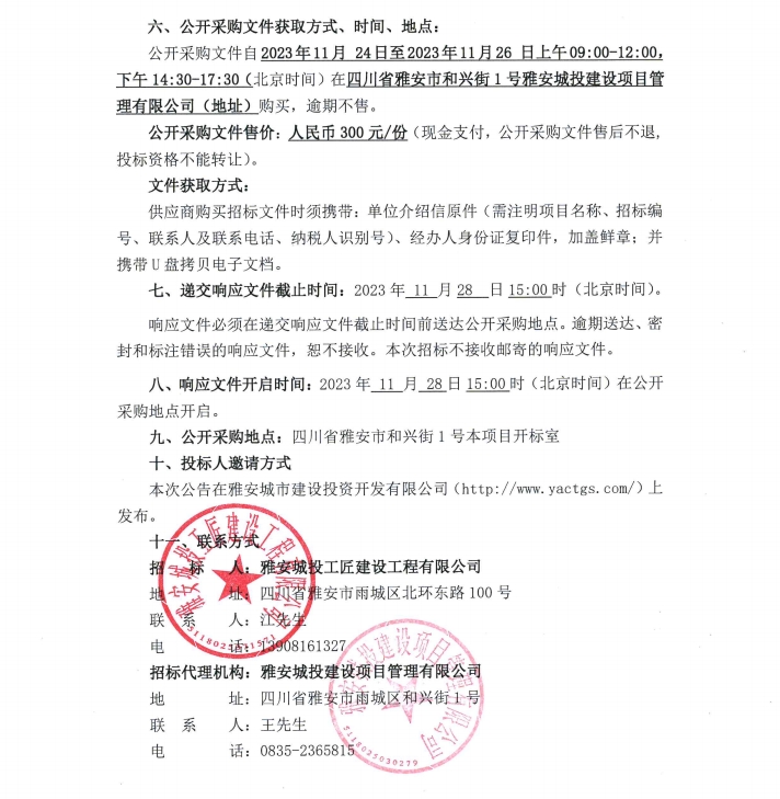 雅安城投工匠建設(shè)工程有限公司2023年市政總包(貳級)及增項資質(zhì)咨詢服務(wù)采購項目公開采購邀請公告