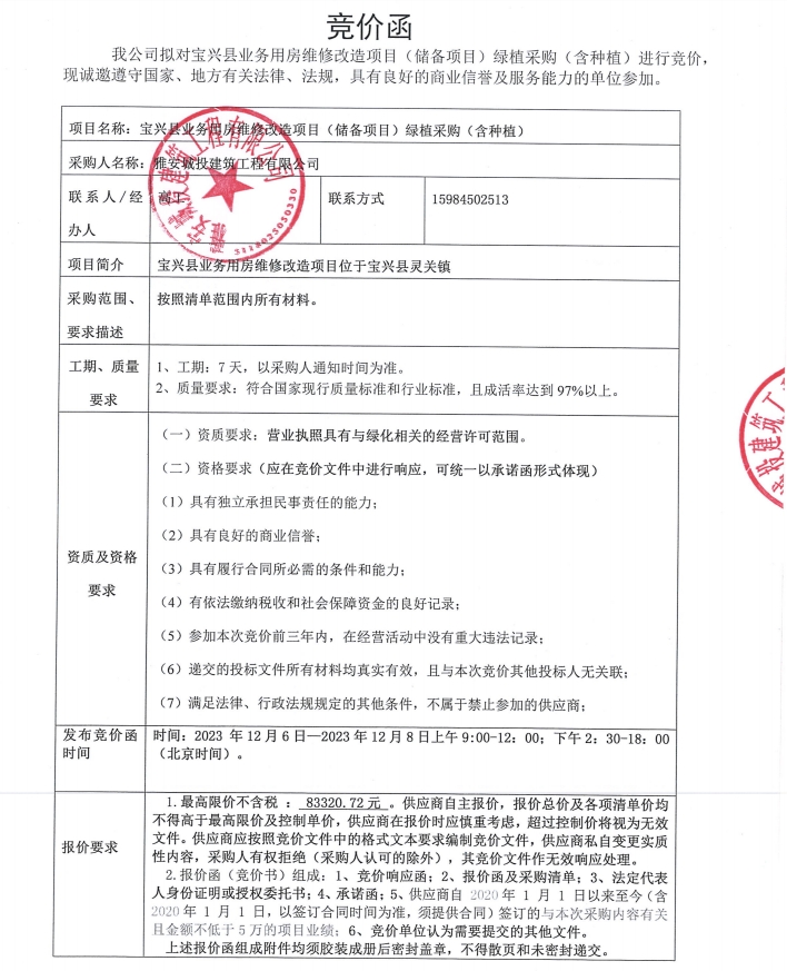 寶興縣業(yè)務(wù)用房維修改造項(xiàng)目(儲(chǔ)備項(xiàng)目)綠植采購(gòu)(含種植)競(jìng)價(jià)公告