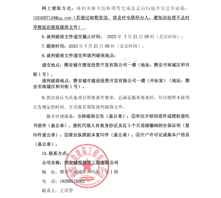 雅安市西康記憶生態(tài)文旅街區(qū)項目一號地塊項目木雕制品采購、安裝談判磋商公告