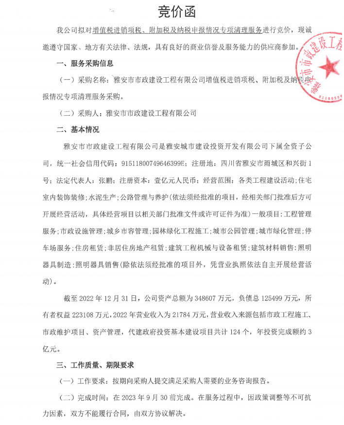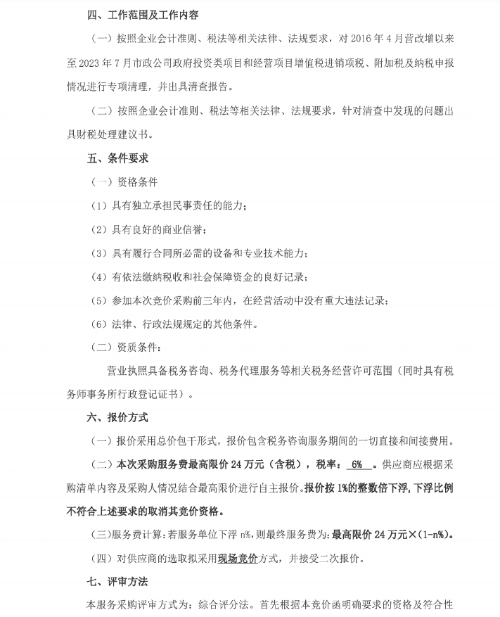市政公司增值稅清理專項(xiàng)服務(wù)采購(gòu)需求書