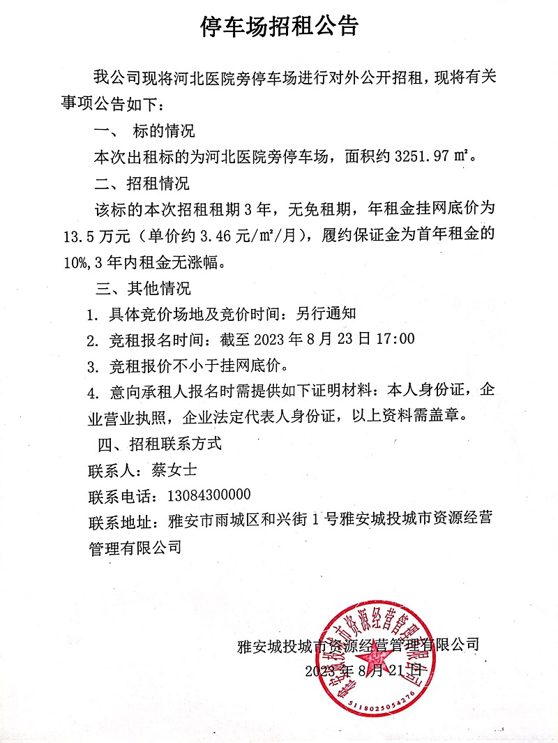 河北醫(yī)院旁停車場(chǎng)招租公告