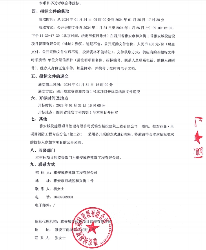 花襄·里項(xiàng)目消防工程專(zhuān)業(yè)分包(第二次)公告