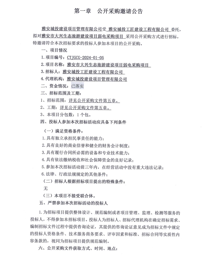 雅安市大興生態(tài)旅游建設(shè)項(xiàng)目弱電采購(gòu)項(xiàng)目公開(kāi)采購(gòu)邀請(qǐng)公告