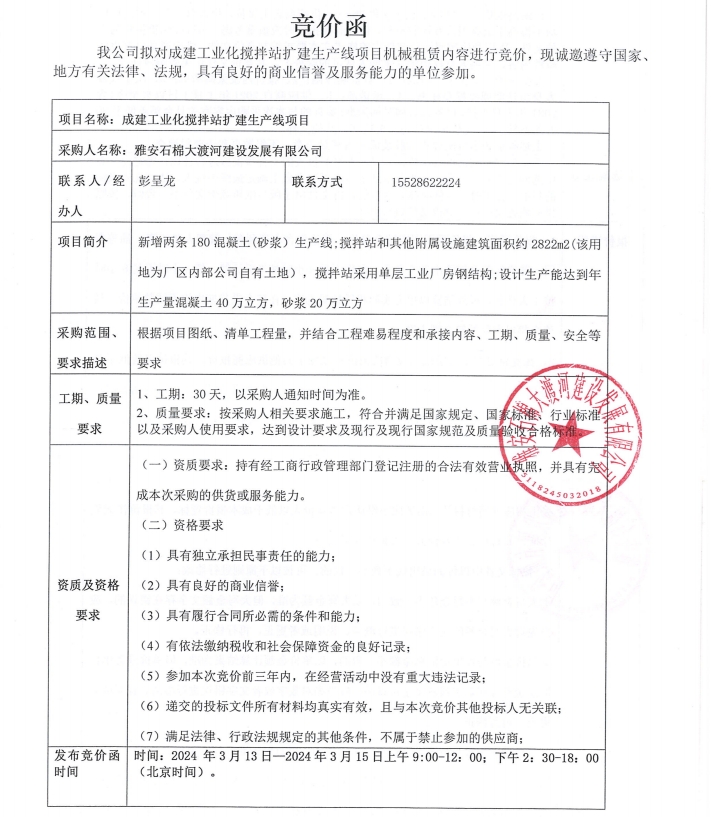 成建工業(yè)化攪拌站擴(kuò)建生產(chǎn)線項(xiàng)目機(jī)械租賃內(nèi)容競價(jià)公告