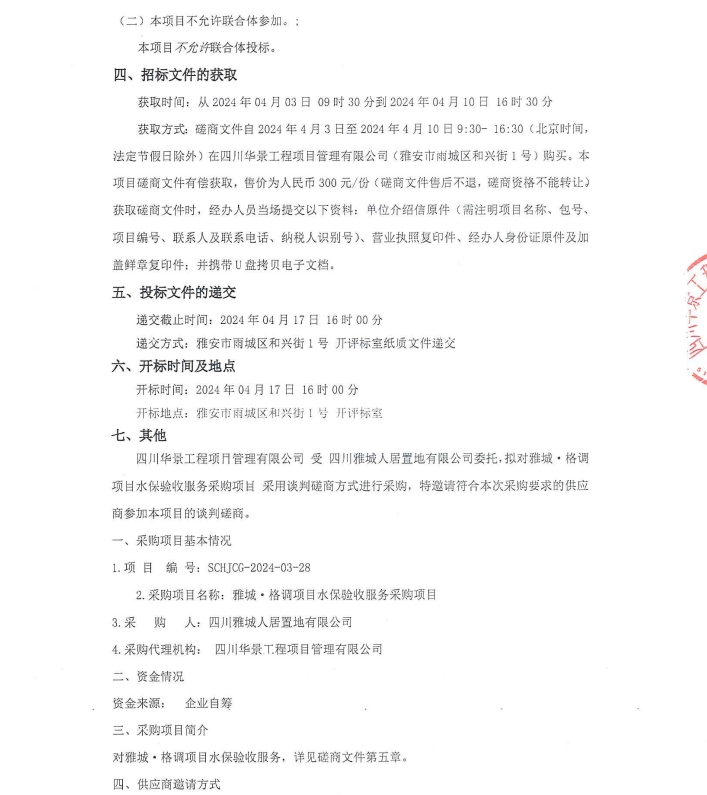 雅城·格調(diào)項目水保驗(yàn)收服務(wù)采購項目競爭性磋商公告
