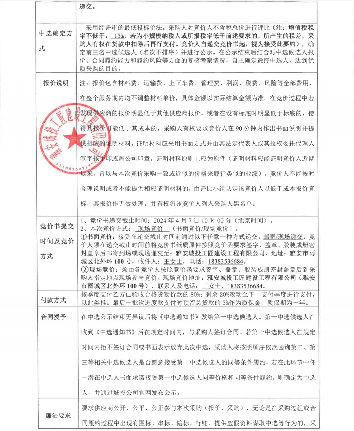 雅安市大興生態(tài)旅游建設(shè)項(xiàng)目零星材料采購(gòu)(第三次)競(jìng)價(jià)公告
