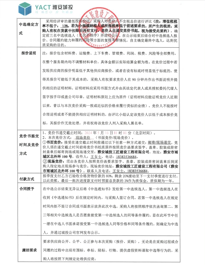 雅安市大興生態(tài)旅游建設(shè)項目吊頂?shù)炔牧喜少彛ǖ谒拇危└們r文件