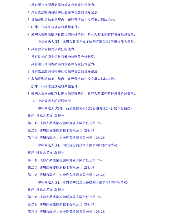 雅州壹號(hào)院人防工程防護(hù)設(shè)備質(zhì)量委托檢測(cè)采購(gòu)項(xiàng)目(第二次)中標(biāo)候選人公示