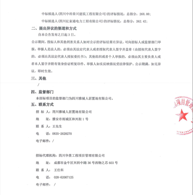雅州印臨時用電工程中標(biāo)候選人公示