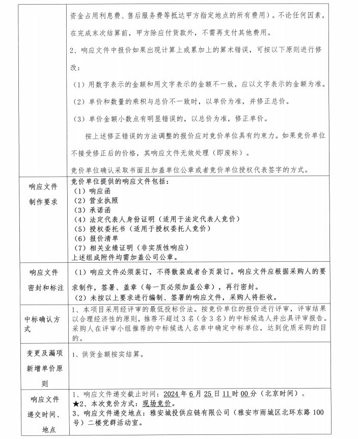 響應(yīng)文件格式-含報價清單