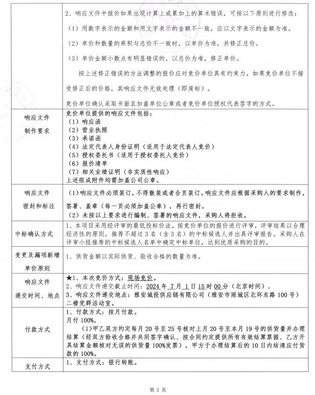 附件1:競(jìng)價(jià)函--雅州壹號(hào)院方矩管采購(gòu)(二次)
