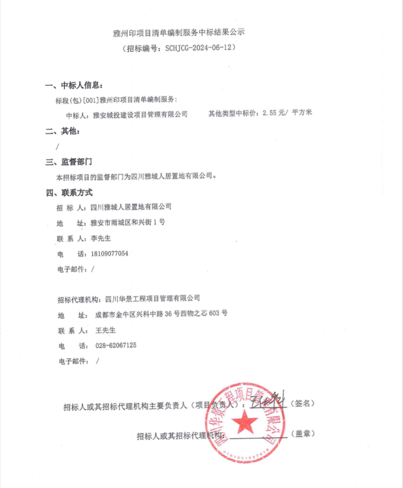 雅州印項目清單編制服務(wù)中標結(jié)果公示