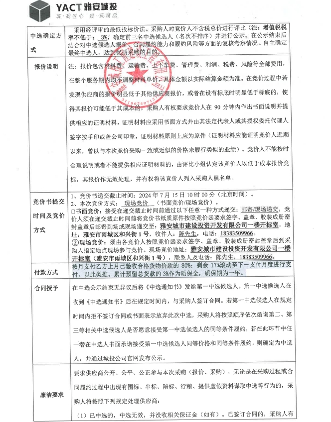 雅安市大興生態(tài)旅游建設(shè)項目洗凈細白沙材料采購(三次)競價公告
