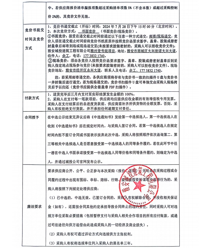 雅州壹號院項(xiàng)目幕墻輔材采購競價(jià)公告