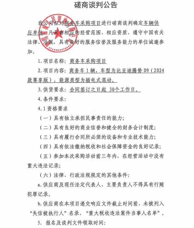 商務(wù)車采購項(xiàng)目磋商談判公告