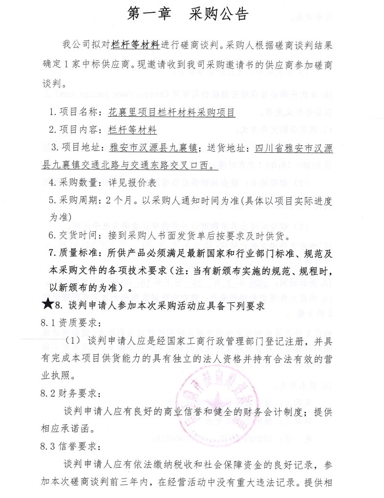 欄桿等材料采購(gòu)公告